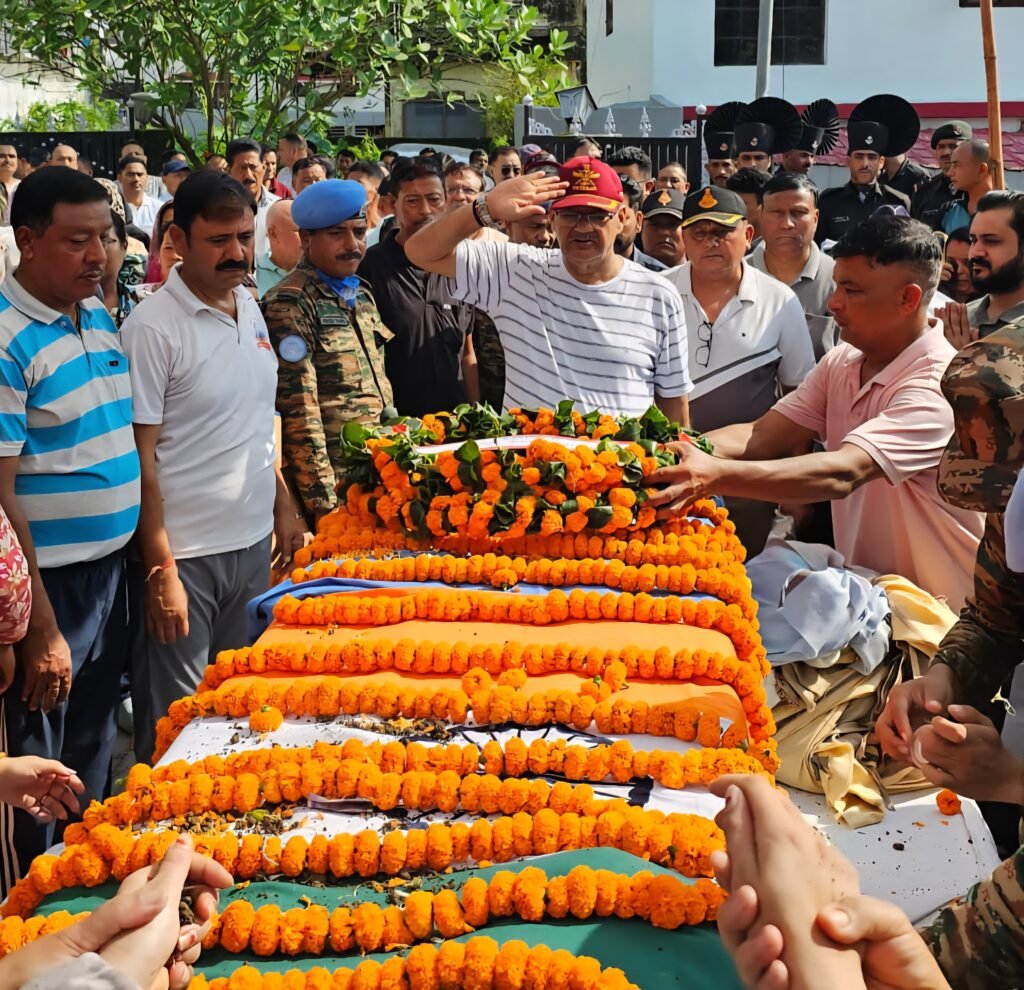 सैनिक कल्याण मंत्री गणेश जोशी ने आज गढ़ी कैंट में नायक सूबेदार सुजीत कुमार प्रधान के पार्थिव शरीर पर पुष्पचक्र अर्पित कर उन्हें भावपूर्ण श्रद्धांजलि दी। इस दौरान सैनिक कल्याण मंत्री ने शहीद के परिजनों का ढाढ़स बंधाया और गहरी शोक संवेदनाएं व्यक्त कीं और राज्य सरकार की ओर से हरसंभव सहायता का आश्वासन दिया।