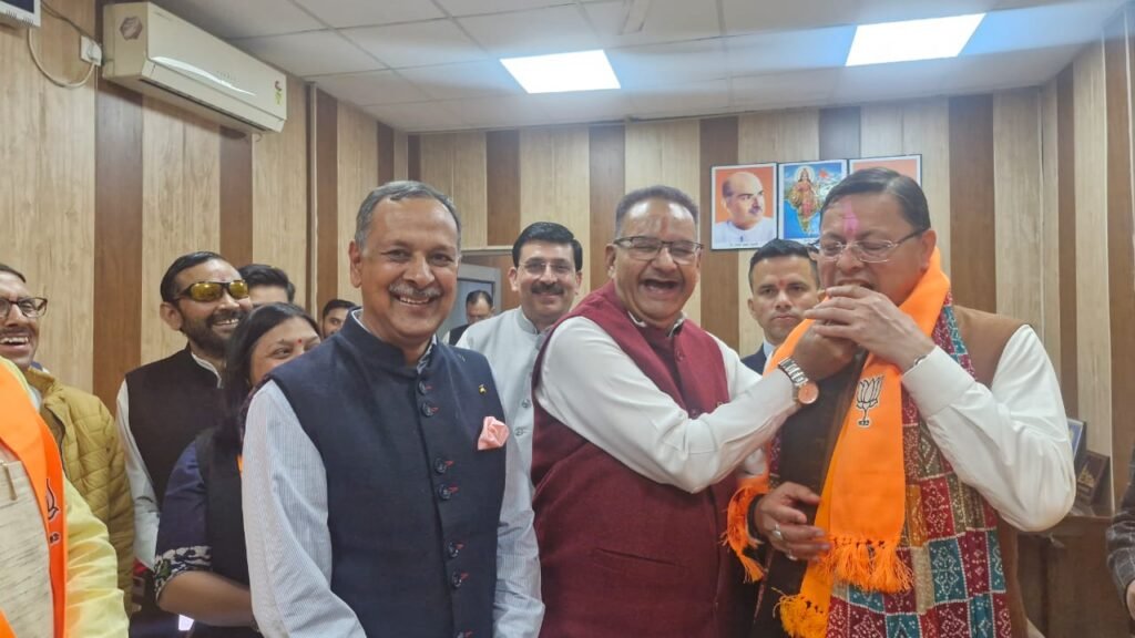 भाजपा प्रदेश कार्यालय में आयोजित अवसर पर कैबिनेट मंत्री गणेश जोशी ने बिहार चुनाव परिणामों को प्रचंड विजय बताते हुए मिठाई खिलाकर उत्सव मनाया